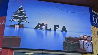 Para Alfa Supermercat, desarrollamos una serie de videos en 3D diseñados específicamente para sus pantallas LED, integradas en espacios comerciales de alta visibilidad. Cada pieza fue creada con un enfoque temático y creativo, alineado con campañas estacionales o eventos concretos (Navidad, Carnaval, etc.).